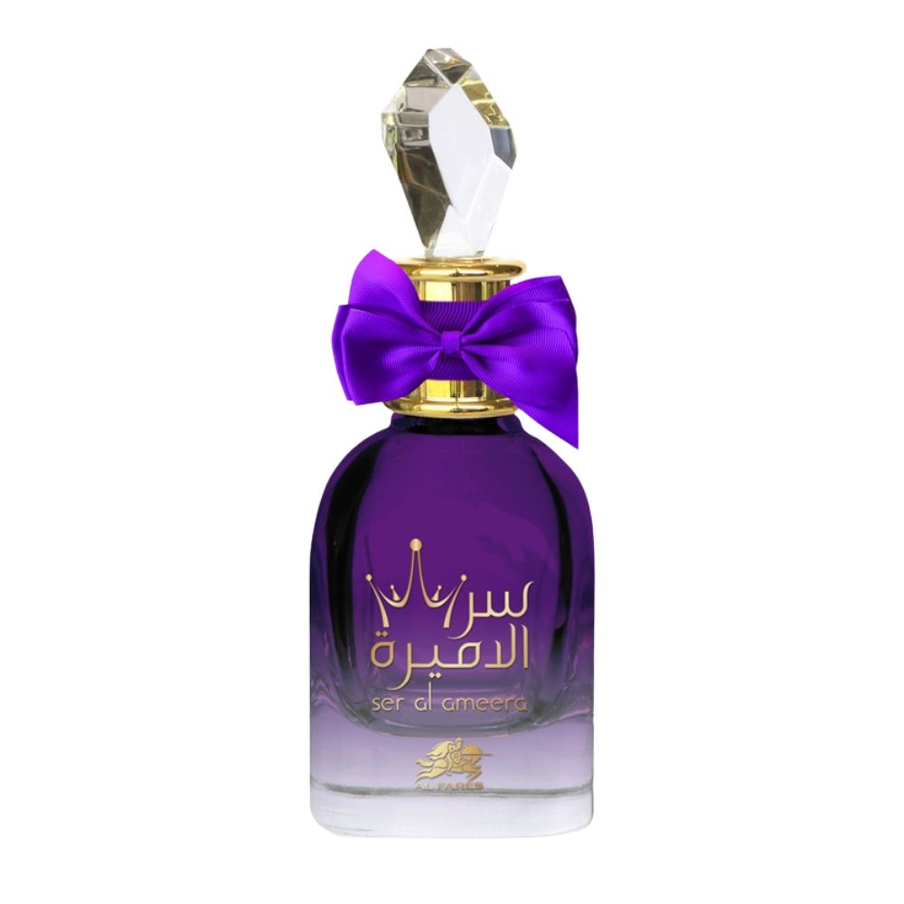 Embrace majestic allure with Ser Al Ameera by Al Fares, a fragrance inspired by princess dreams, sophistication, and graceful charm. Ser Al Ameera opens with sparkling citrus and bright spices, reveals an enthralling heart of florals and woods, and settles into a soft, irresistible base. This scent is crafted for women who desire elegance, fantasy, and true distinction.